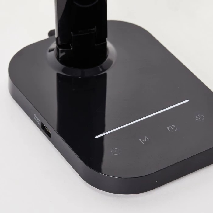 mit Touchdimmer; Lichtfarbe von warmweiß bis tageslichtweiß einstellbar; inklusive USB-Anschluss zum Laden von mobilen Geräten; Nachtlichtfunktion und Timer; Kopf schwenkbar; energiesparend und langlebig durch den Einsatz von LED-Technik